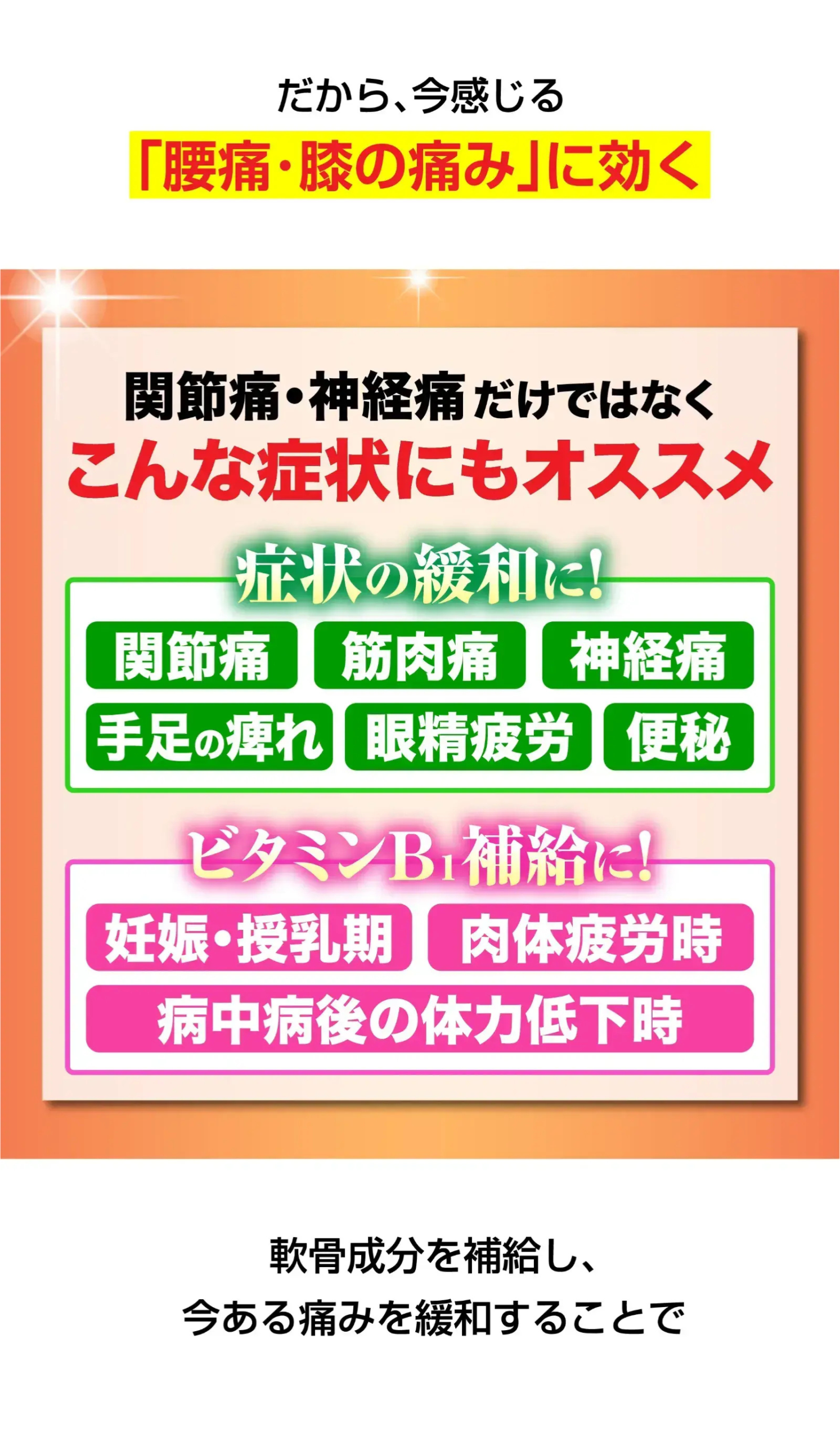 未分類 2026.02.132026.02.05 年齢によって背骨のクッション役(軟骨)が すり減っていき神経が圧迫脊柱管が狭まることで、 神経が圧迫され腰痛や膝の痛みに… ※定期コース初回1,480円(税込)を30日分で算出